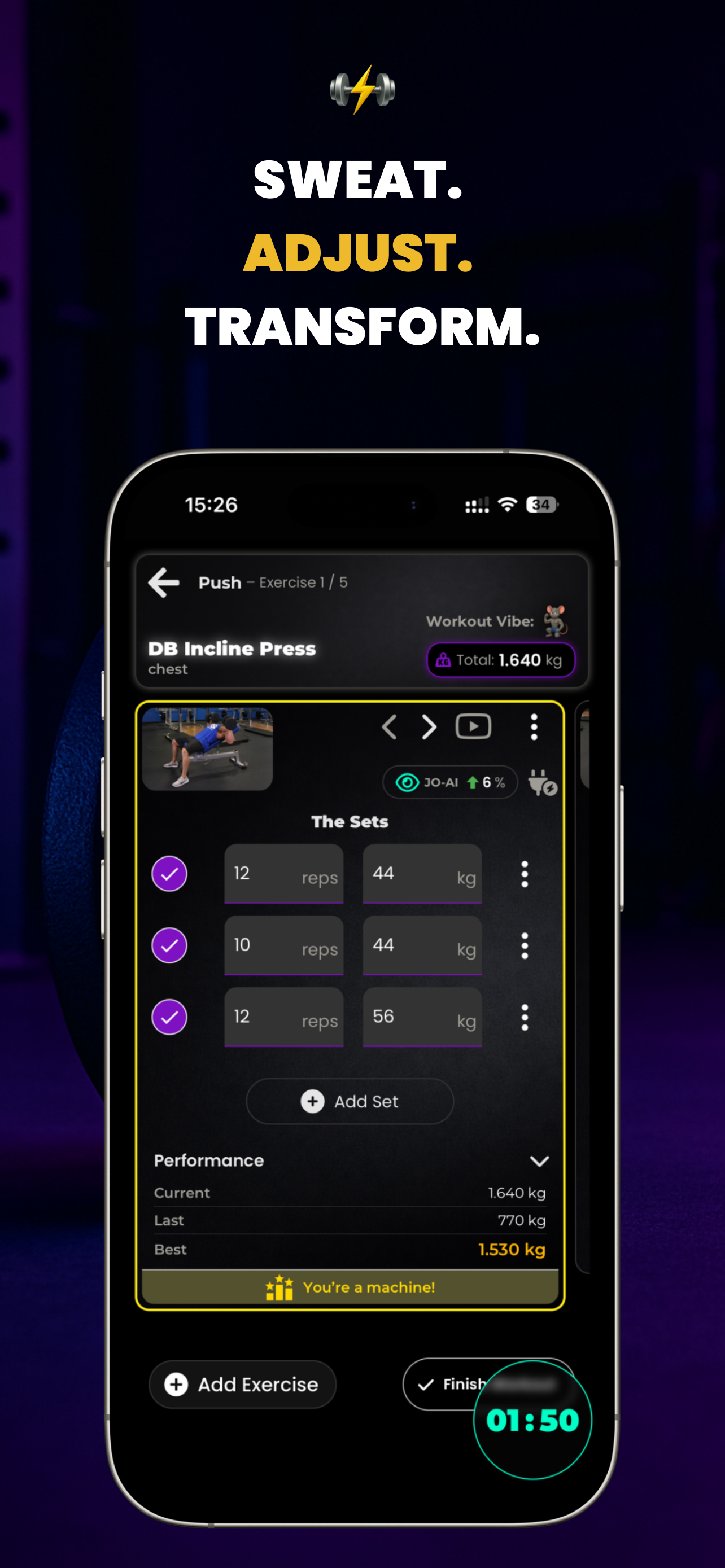 Our app offers comprehensive workout tracking, deloading phases, hypertrophy suggestions, and detailed progress graphs. You can also access personalized workout plans and analyze your data to understand your progress or identify areas for improvement.